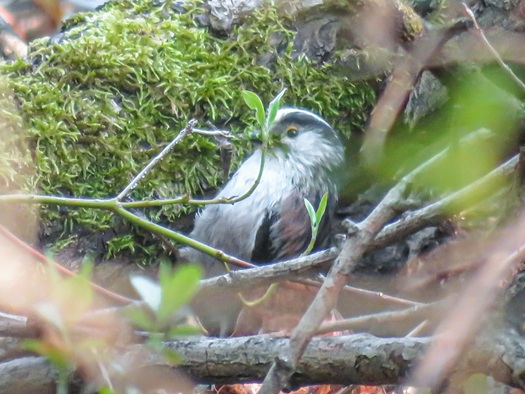 Der Nestbau der Schwanzmeise ist eine eindrucksvolle Leistung: In wochenlanger Arbeit entsteht ein geschlossenes, ovales Nest aus Brombeer- oder Ginsterranken, Moos (Abb.2) und Pflanzenfasern, zusammengehalten durch Spinnweben und mit Flechten umhüllt (Abb.3). Das Innere wird mit zahlreichen Federn ausgepolstert und bietet eine hervorragende Wärmeisolierung.