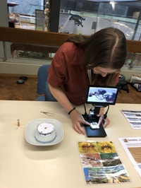 Infostand und Mikroskopierstation am Museum für Alltagskultur
