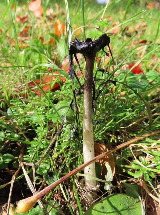 Schopftintlinge haben eine besondere Strategie entwickelt, um ihre Sporen zu verbreiten: Der Hut zersetzt sich innerhalb von wenigen Tagen von unten beginnend mitsamt der Lamellen und den darin befindlichen Sporen zu einer schwarzen, an Tinte erinnernden Flüssigkeit (Abb. 4). Dies wird als Autolyse, also Selbstauflösung bezeichnet. Der Hut wölbt sich dabei etwas nach außen und beginnt dann zu zerfasern (Abb. 5). Die Sporen tropfen mitsamt der “Tinte” nach unten auf den Boden und werden zusätzlich durch Wind und Regen verteilt (Abb. 6). Die “Tinte” des sogenannten Tintenpilzes wurde früher tatsächlich zu Schreibtinte verarbeitet und teilweise sind die Sporen in der Tinte auch heute noch unter dem Mikroskop nachweisbar.