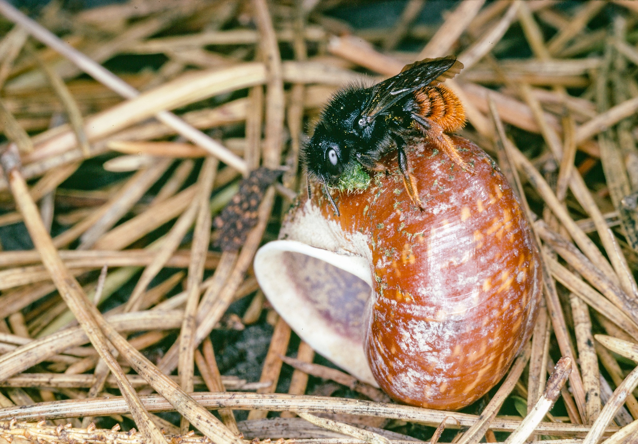 Wer diese spektakuläre Brutfürsorge auch selbst einmal beobachten möchte, kann auch schon bei sich im eigenen naturnah gestalteten Garten Glück haben, denn die zweifarbige Schneckenhausbiene ist trotz ihrer anspruchsvollen Nistgewohnheiten noch recht häufig anzutreffen und bis auf Schleswig-Holstein deutschlandweit verbreitet. Dabei dienen ihnen beispielsweise extensiv bewirtschaftete Magerrasen oder Weinbergbrachen als Lebensraum, in dem neben störungsfreien Nistplätzen auch ein breites Nahrungsangebot benötigt wird, das die Schneckenhausbiene als generalistische „polylektische“ Art mit nachgewiesen Blütenbesuchen aus 13 Pflanzenfamilien voll ausschöpfen kann.